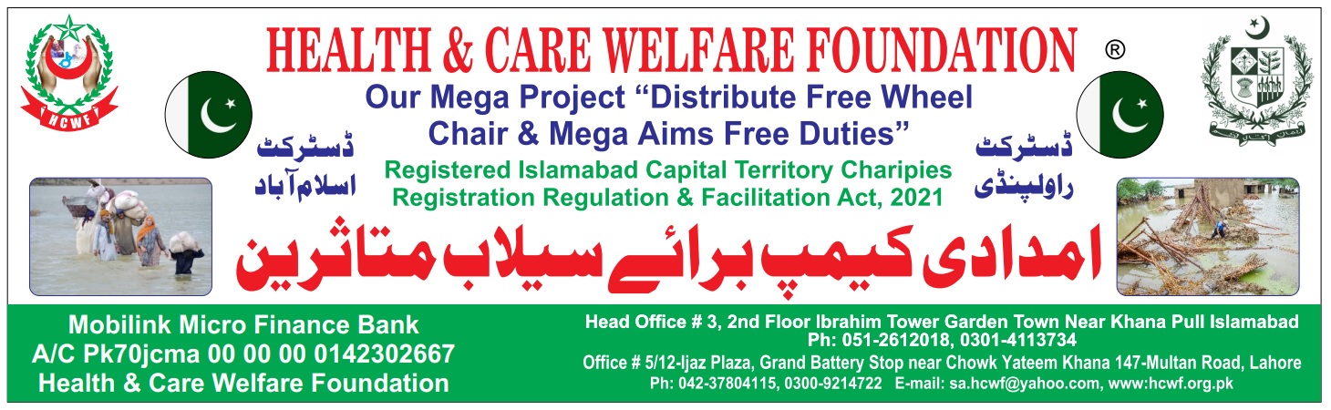 Health & Care Welfare Foundation always trying for the progress of sad and needy people. It helped country and national in every condition. In every kind of accident and critical conditions Health & Care is always present. From the earth quack of Kashmir, Still our workers are busy in their working. In the earth quack of 2005, as scout teams had work by the sentiment of heartedly love, for the country, Similarly still today some scout boys are giving their duties in Health & Care welfare Foundation. In 2008 after the Registration, Whom Sawat & Malakand a problem created of impressired Then Health & Care has taken permission from D.C.O Lahore and organized a helping camp at More Bhekewal Lahore.
